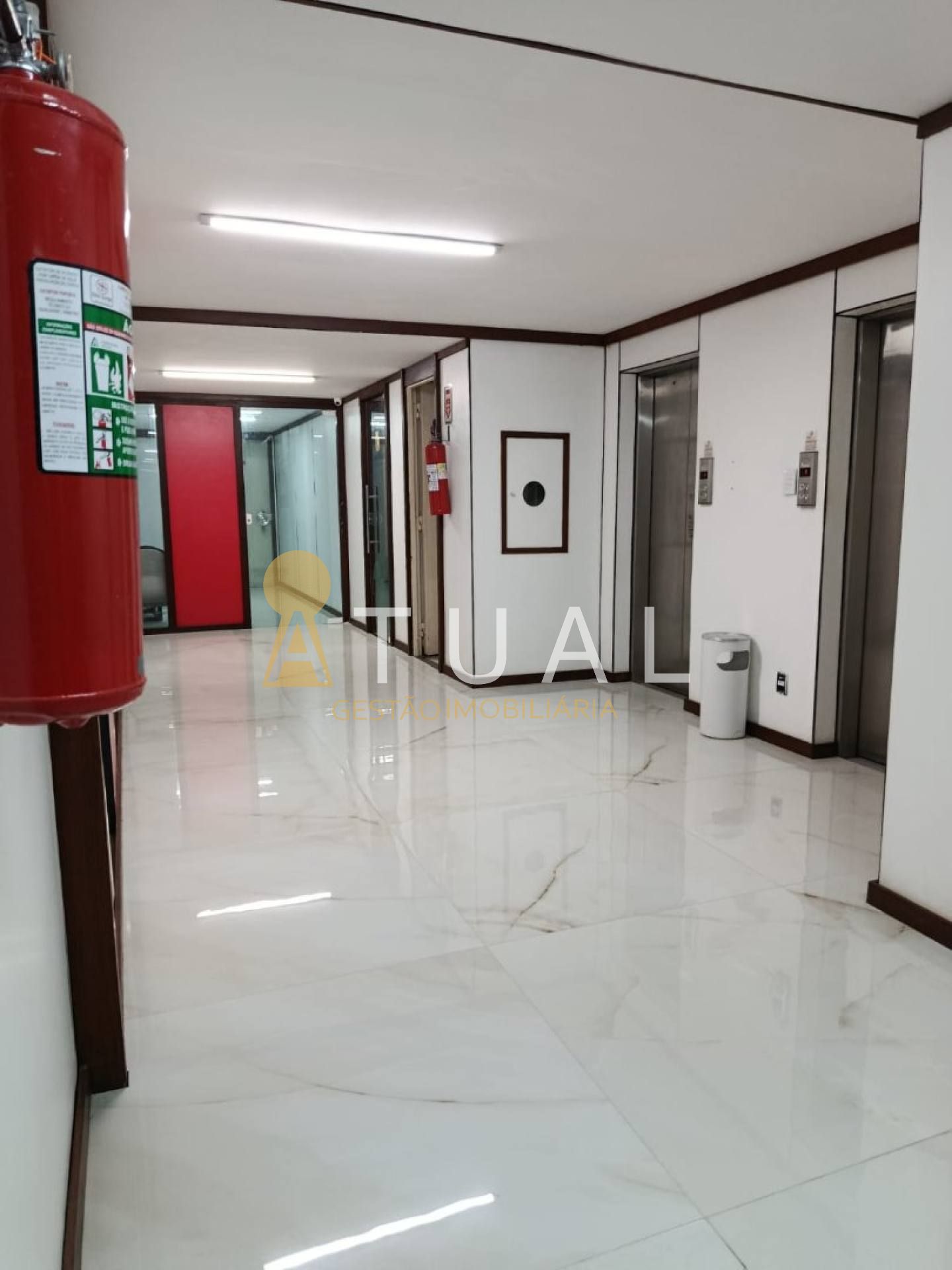 Sala comercial com 35m², sala com 2 ambientes, recepção, banheiro e armários em madeira. 2 vagas de garagem.